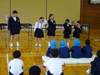 1年生とあすなろ学級による暗唱「小川のマーチ」 動作もつけました。