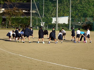 現在、最高タイムの児童の挨拶で、練習開始です。