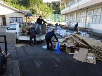 各区の資源類がどんどん車で学校に運ばれてきます。保護者の皆さんを中心に地域の方も交えて、大勢の方で積み下ろしをしてくださいました。皆さんのご協力のもと、スムーズに作業が進みます。先生方も頑張っています。