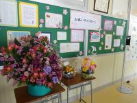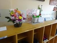 お世話になった先生方からいただいた、たくさんのお花やメッセージが、卒業生を出迎えます。