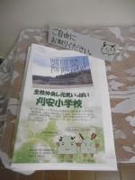 何度もやり直しながら、何とか合格し、校内に配付することができました。完了!ではありません。改訂したパンフレットを地域の皆様にも見ていただけるように、各施設へお願いをします。そのために、国語の学習を生かして、お願いのお手紙も書きました。学校に来てくださったお客様にも、自由に持っていってもらえるようにします。ただ置いただけでは手に取ってもらえないかもしれない。そこで登場するのは、算数で習った三角柱の看板です!これでよし!総合的な学習、国語、算数・・・様々な教科の学びを生かした「新」パンフレットの完成です。