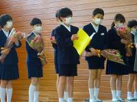 児童の代表は、各先生方との思い出を話してくれました。花束贈呈では、一人ひとりその子らしい言葉や態度で先生への感謝の気持ちを伝えていました。