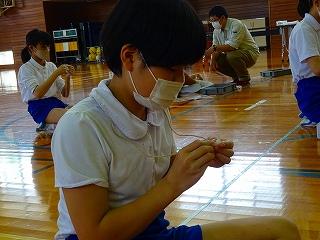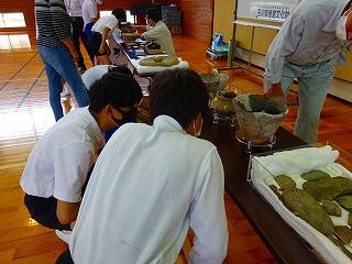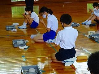 最後に今日の授業の目玉である「勾玉づくり」をします。