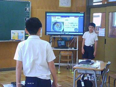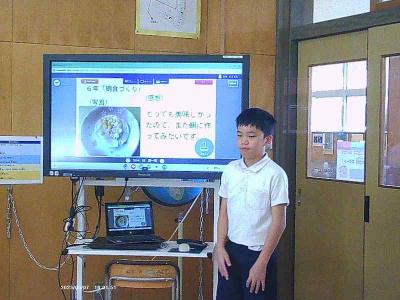 家での朝食づくりに挑戦しました。作り方や味付けの仕方について写真を用いて発表しました。おいしそうで、作ってみたくなりました。