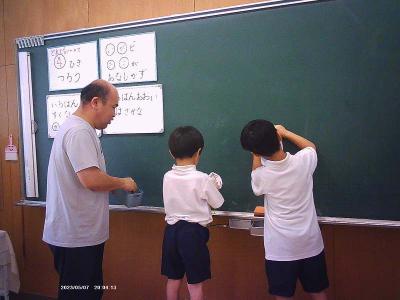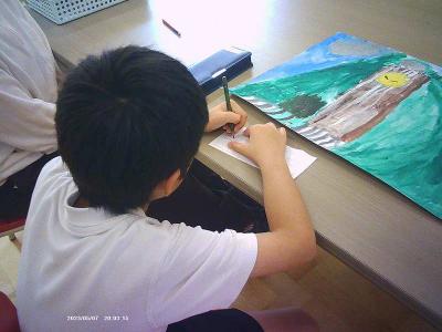 【すみれ学級】夏休みに描いた絵の題名を考えました。