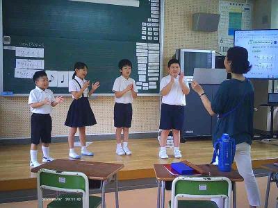 リズム譜を見て、いろいろなリズム打ちをしました。