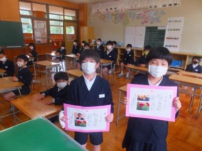 「大きな声で・目を見て・えがおで」の挨拶を全校で心がけ、