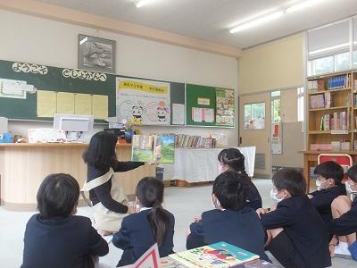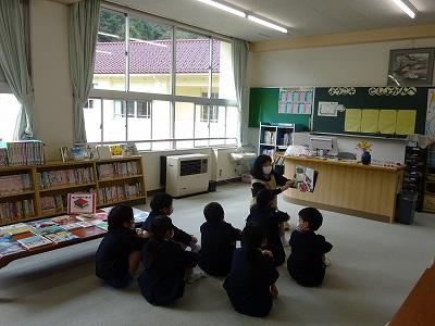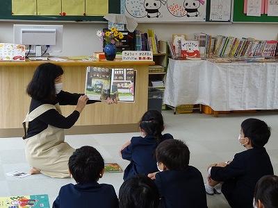 10/15 図書館の先生の来校日。朝、3,4年生が読み聞かせをしていただきました。