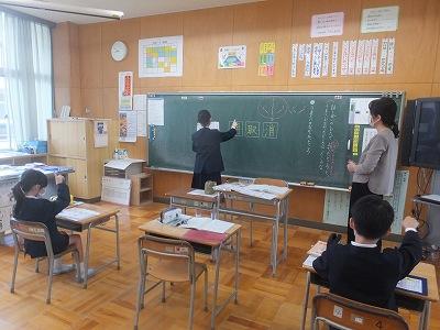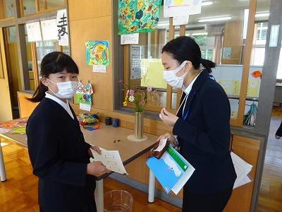 休み時間。6年生が、バス遠足のしおりを持って先生のところへ。