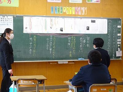 指導主事の先生より、一人一人を大切にしたあたたかい授業であった、考えをつなぎ広げる関わりがよかった等々、ほめていただきました。そして今後にむけて的確なご指導をいただきました。