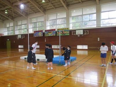 1,2年生は、自分のおでこくらいの高さを跳ぶ 5年生に びっくり!!