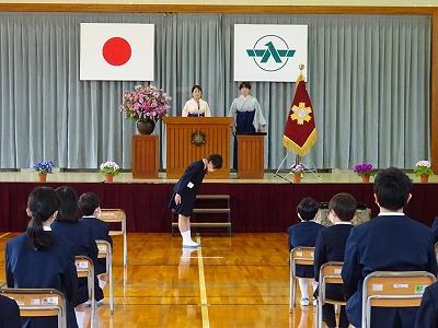 学校長式辞。これまで令和二年度 ただ一人の最高学年としていかに活躍が素晴らしかったことか・・・・オンライン授業や様々な会での代表挨拶 思い出がいっぱい!!