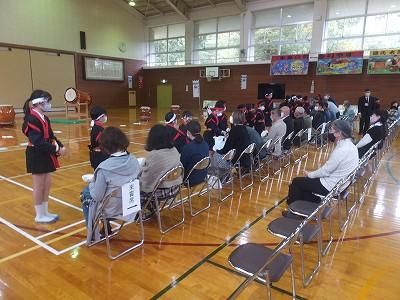 3限 地域の方々、保護者の方々が体育館に集まってくださいました。