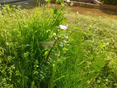 中庭に、とんぼの姿が見られました。羽が一枚傷ついており、そっと休んでいるようです。
