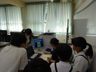 パソコン室では、PCサポーターの先生を囲んで子どもたちが真剣に見入っています。