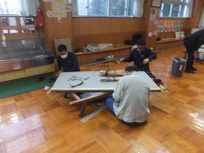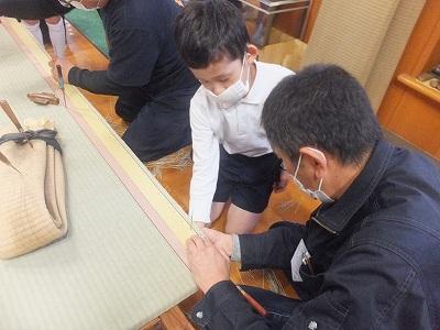 保護者のみなさんもチャレンジ!! 畳を縫うのは とても固くて大変です。