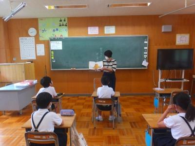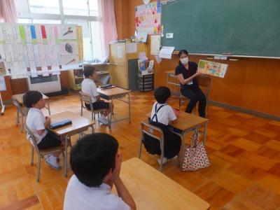 本日は、3,4年生は図書の先生の読み聞かせ。他のクラスは担任が入れ替わって読み聞かせです。