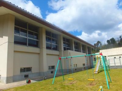 学校の裏の雑木林。森林組合の方々の剪定作業のおかげで、すっきりと整いました。