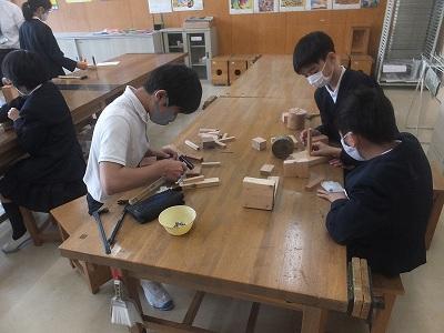 森林の学習。見学させていただいた製材工場で廃材をわけていただき、木工作。
