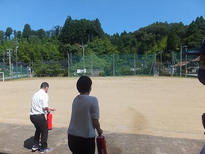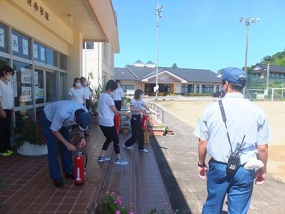 練習用の消火器(水が出るもの)を使わせていただき、全員やってみました。