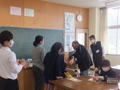 鶴の足を固定するための穴は 先生に電気ドリルで あけていただきました。