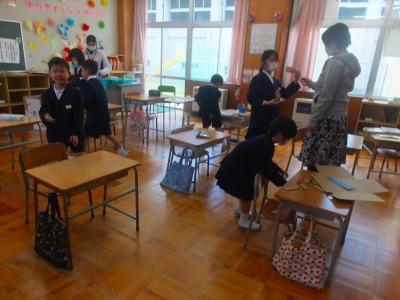 4/14 臨時休校2日めです。玄関飾りは「入学おめでとう」から、「えがおで挨拶」にチェンジしました。