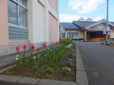 チューリップも花盛り。校務員さんが登校する子どもたちのために飾ってくれました。