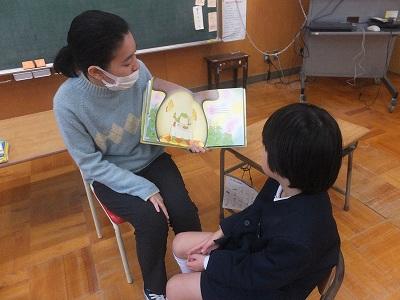 朝の読み聞かせで、クリスマスツリーの絵本を読んでもらっています。