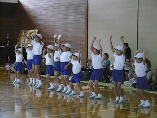 津幡町歌をピシッと、にんじゃりばんばんをかわいらしく踊ります。