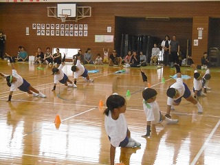 1~3年生は難しい振り付けを友達同士で確認しながら、自主練習していました。