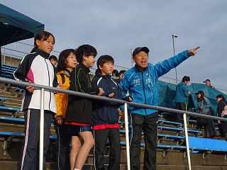 今年も全日本大学駅伝に参加したことのある保護者の石山さんが、当日の朝ご指導くださいました。陸上競技場を見渡し、全体のイメージを組み立てます。