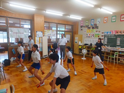 音楽に合わせて、掛け声も高らかにがんばっています。