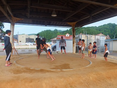 7/10 夕方、第3回の相撲の稽古がありました。本日もお父さん、お母さん方、そして大会にはまだ出られない低学年児童や女子の応援もあり、気合いが入ってきた感じです。