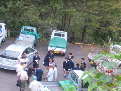龍が峰城址公園に、9名の卒業生が一人一本ずつ植樹しました。