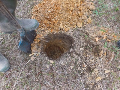 植える場所には、木の先生方が、様々な道具や肥料を運び、穴をあけて待っていてくださいました。