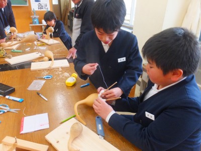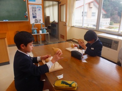 そして、4年生がひょうたんで鶴の親子を作ることにチャレンジさせていただきました。
