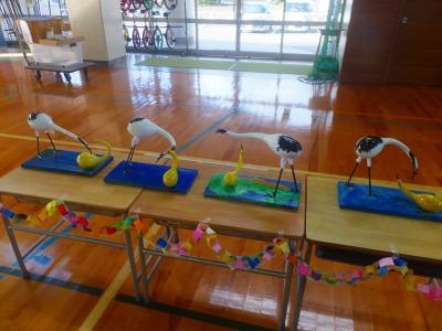 ひょうたんの先生にお習いして作った四年生作の鶴の親子もスタンバイオッケーです。
