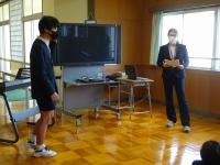 5年生は3人が発表しました。それぞれが担任と英語のやりとりをしました。名前、誕生日、誕生日に欲しいもの、家族のこと等をジェスチャーを使って、上手に話してくれました。