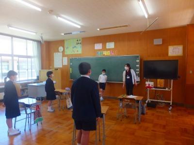 こちらは外国語。ALTの先生の来校はまだですが、担当教諭のリードで