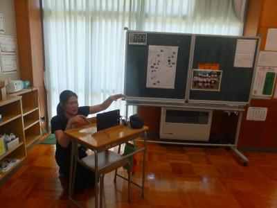 子どもたちの下校後は、萩野台小さんとのオンラインテスト送信。
