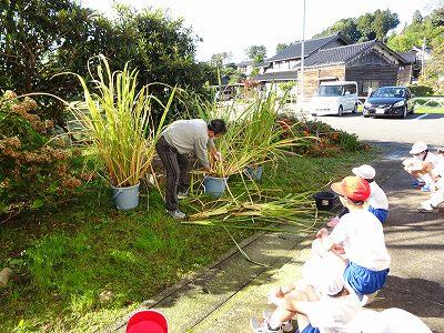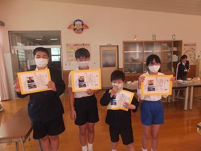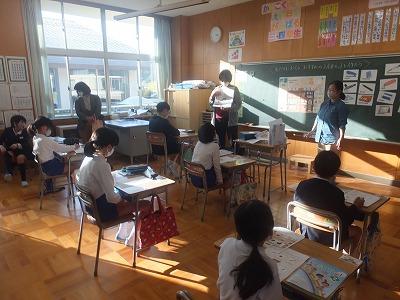 わーい。3,4年生からおすそわけ。全校児童が一つずつお持ち帰りしました。