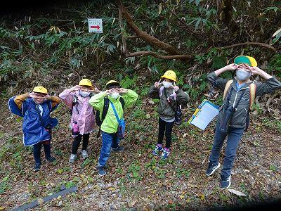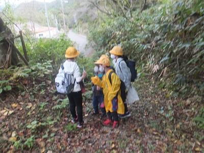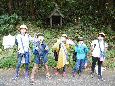 自然の家の先生方のお話を聞き、いよいよ午前の活動「追跡ハイク」開始。