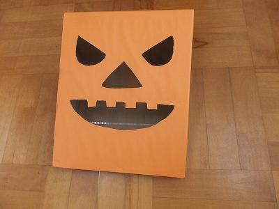 大きなかぼちゃのおばけにむかって、えいっとエコキャップを投げで、
