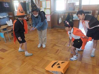 1,2年生の英語は、ハロウィンの気分で、るんるん。