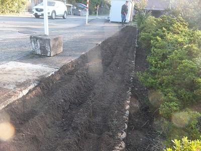 職員も登校し、ともに花壇に腐葉土や肥料をまき、耕しました。