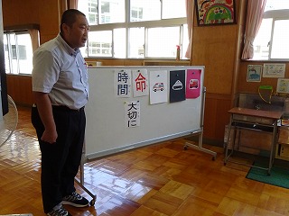 広島・長崎に原爆が投下された8月上旬の登校日に、平和についての集会を行う学校が多いのですが、刈安小学校は、その日は笠野小学校との2校交流、寺尾夏祭りに向けた「刈安ソーラン」の練習と日程が立て込んでいます。そのため、終業式の中で、校長先生が平和について話をしました。