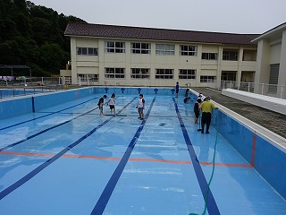 大プールは4.5年生が磨き上げました。