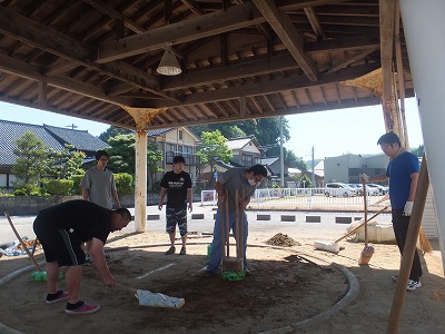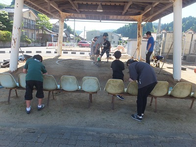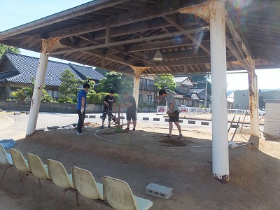 夏の相撲大会にむけて、PTAのみなさんが相撲場の整備に来てくださいました。