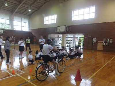 六年生が自転車でのモデル運転をしました。