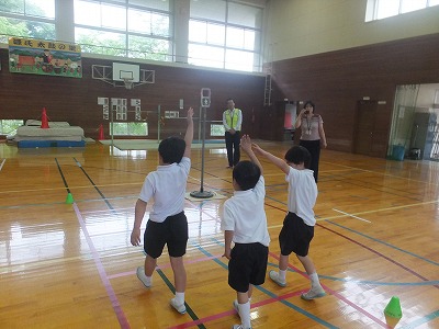 左右の確認、横断するときは手をあげること等、実際に体を動かして